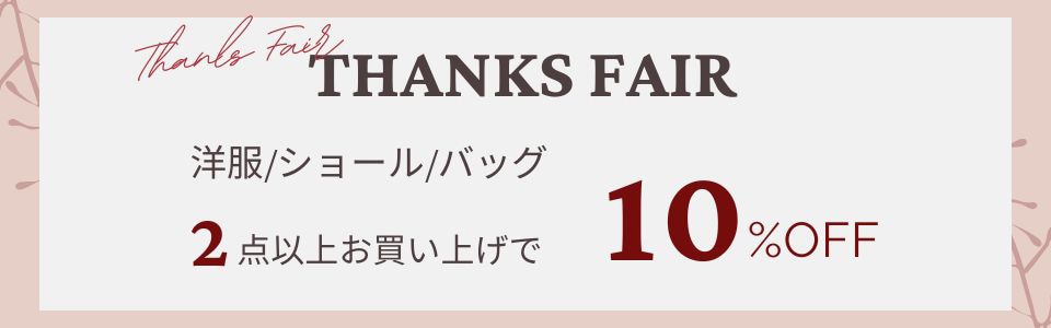秋冬の新作アイテムが、今だけお得に手に入るThanks Fair開催中! 洋服、ショール、バッグなど、この季節にぴったりの新作が 2点以上で10%OFFに。今から使えるアイテムをお得に手に入れるチャンスです。